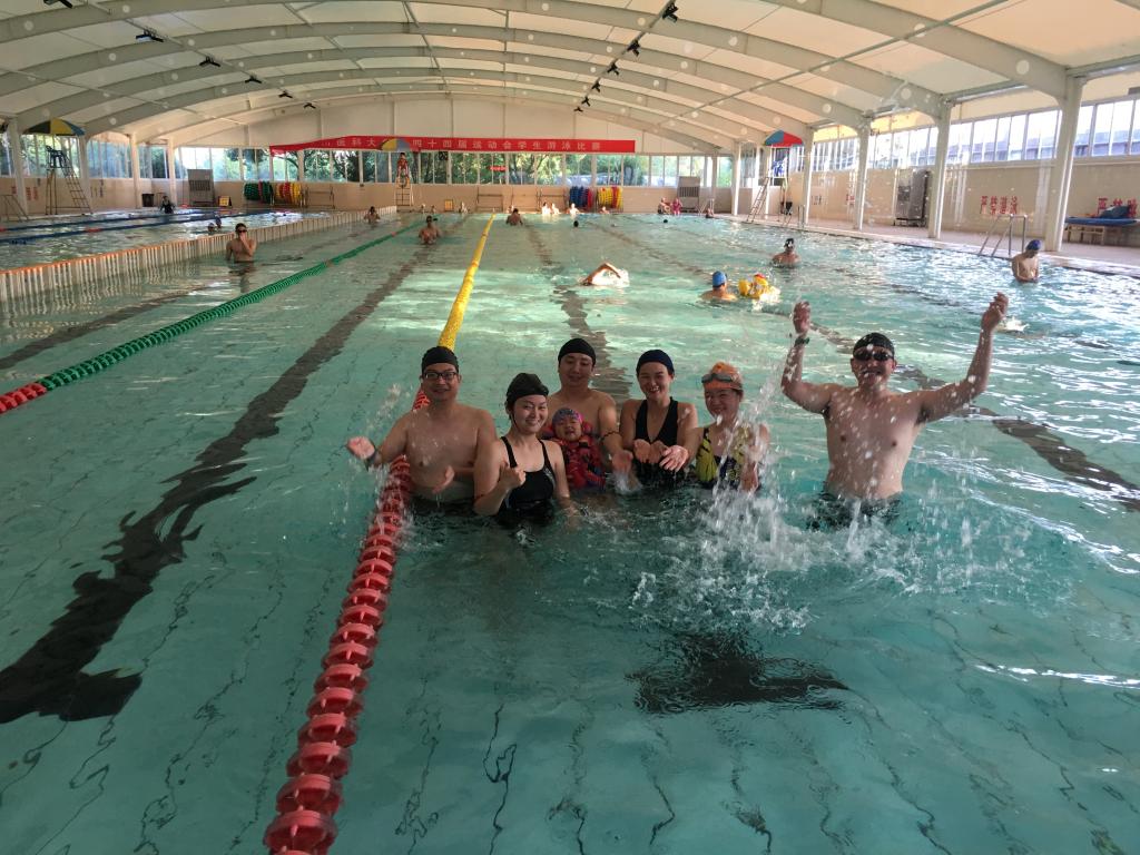 游泳活动则安排在了每周三的下午下班后,为了方便教工,地点就近选择了温州医科大学游泳馆。热完身,泳技娴熟的老师们如蛟龙入水,蹬壁,划手,换气,转身一气呵成,破浪前行,而初学游泳的老师们则慢慢练习着闭气,漂浮,划水,蹬腿等基本动作,逐步掌握游泳技巧,向着30米、50米的泳程目标努力。
