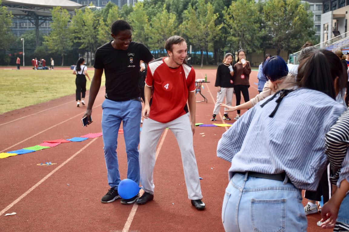 此次趣味运动会项目内容丰富,其中赶小猪、海底捞月和掌上明珠三个闯关计时项目最受师生欢迎。选手们个个争分夺秒、认真投入,期望自己在更短的时间战胜竞争对手,赢得比赛胜利。老师们也纷纷加入,迅速找好自己的队友参加比赛。运动会还特别设置了附加闯关赛——脚底生花,两两选手组合参赛,排名靠前的队伍可获得时间奖励,为自己获胜增加砝码。国际学生与中国学生团结协作,奋力拼搏,配合队友调整好自己的速度,尽量减少比赛时间以获得优胜。