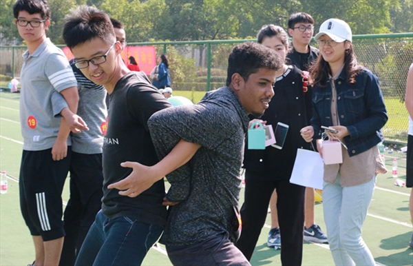 2017年10月22日上午,区块链游戏 师生趣味运动会在北校区人工草坪举行,区块链游戏 部分老师及中外学生100余人参加了此次活动。