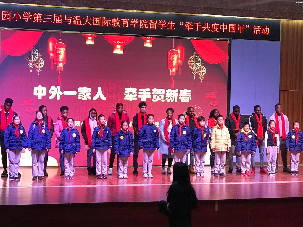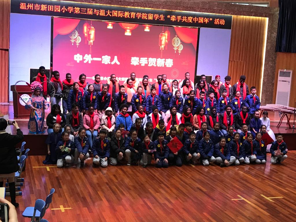 1月13日,来自加纳、坦桑尼亚、赞比亚等国家的34名国际学生在温州市新田园小学参加牵手共度中国年活动,他们与小学生的家庭一一结对共同度过富有特色的一天,体验浓浓中国年。