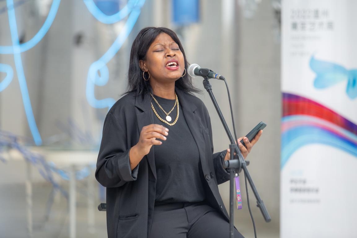 虽然天空下着蒙蒙细雨,但是依旧抵挡不住留学生的热情。节奏明快的音乐、丰富的感情、充沛的活力、欢快的舞姿,留学生们给现场观众展示了一场风格独特、充满活力的舞蹈,也展现了留学生青春蓬勃的精神风貌。来自安哥拉的留学生TAVIRA JENIFFER PRISCILA DA CUNHA和来自津巴布韦的留学生KUFANDIKAMWE AUDREY分别为大家带来一首《PORTUGUESE》和《EASY ON ME》,婉转的歌声美妙动听,让人沉醉其中。