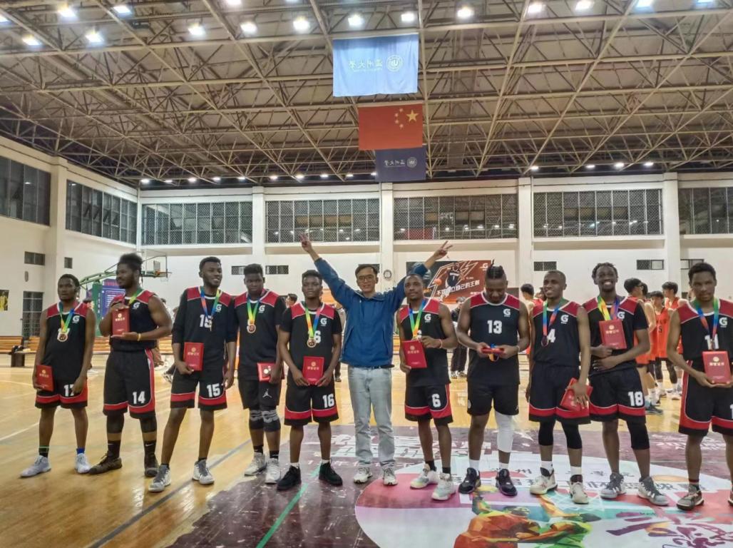 的指导下成立,由喜欢篮球运动的留学生们组成,篮球队队长是来自22级法学专业的KALAMBAYI FARAI BAIN KLEIN(金龙),今年由他带领队员参赛,从队员的选拔到常规训练,到参加比赛他都付出了很大努力。虽然训练过程比较辛苦,但是留学生们在面临对手时仍能保持团结一致、充满斗志,及时调整策略,最终在队员们的不懈努力下屡战屡胜并最终夺得冠军。