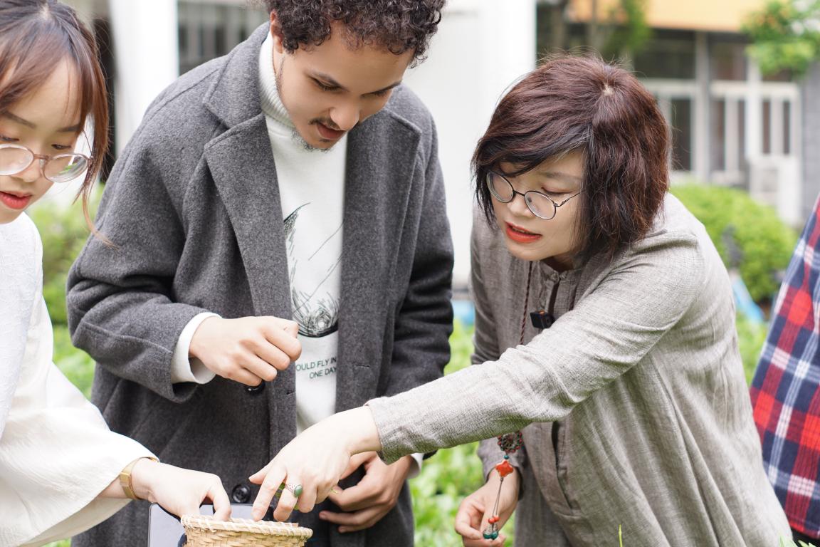 楼下的国际茶苑采摘茶叶。学生们亲手采下片片鲜嫩的叶子,又回到茶室学习绿茶炒制的全过程。大家踊跃向前,积极体验,体会到了一片香茶背后付出的艰辛劳动,收获了前所未有的喜悦。接着,留学生们在茶艺师的指导下尝试自己泡茶。在茶与水的交融中,茶叶被赋予崭新的生命力,缕缕茶香让大家沉浸在中国文化的享受里,忘却了时间,忘却了烦恼。