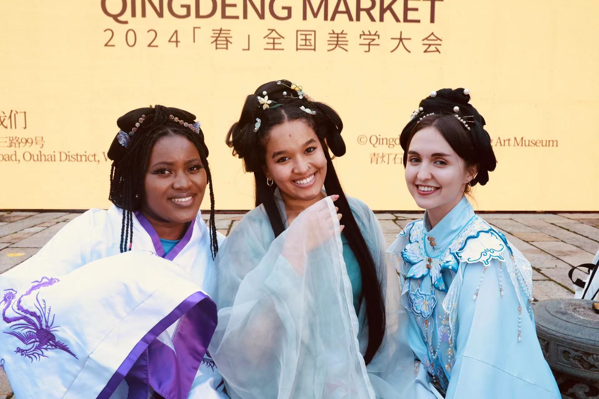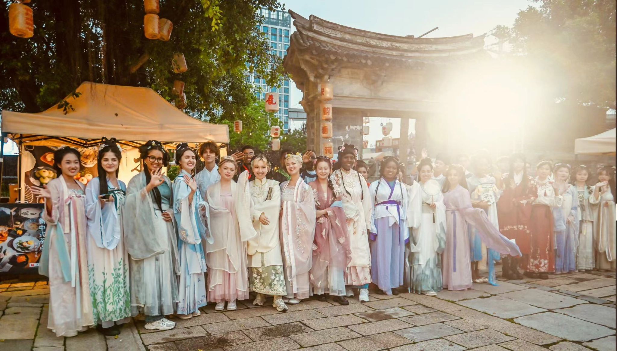 来自俄罗斯、摩洛哥、泰国、越南等国家的20余位留学生身着汉服游市集、品文化,开启了一场领略中华传统美学魅力的奇妙之旅,成为一道亮丽的风景线。