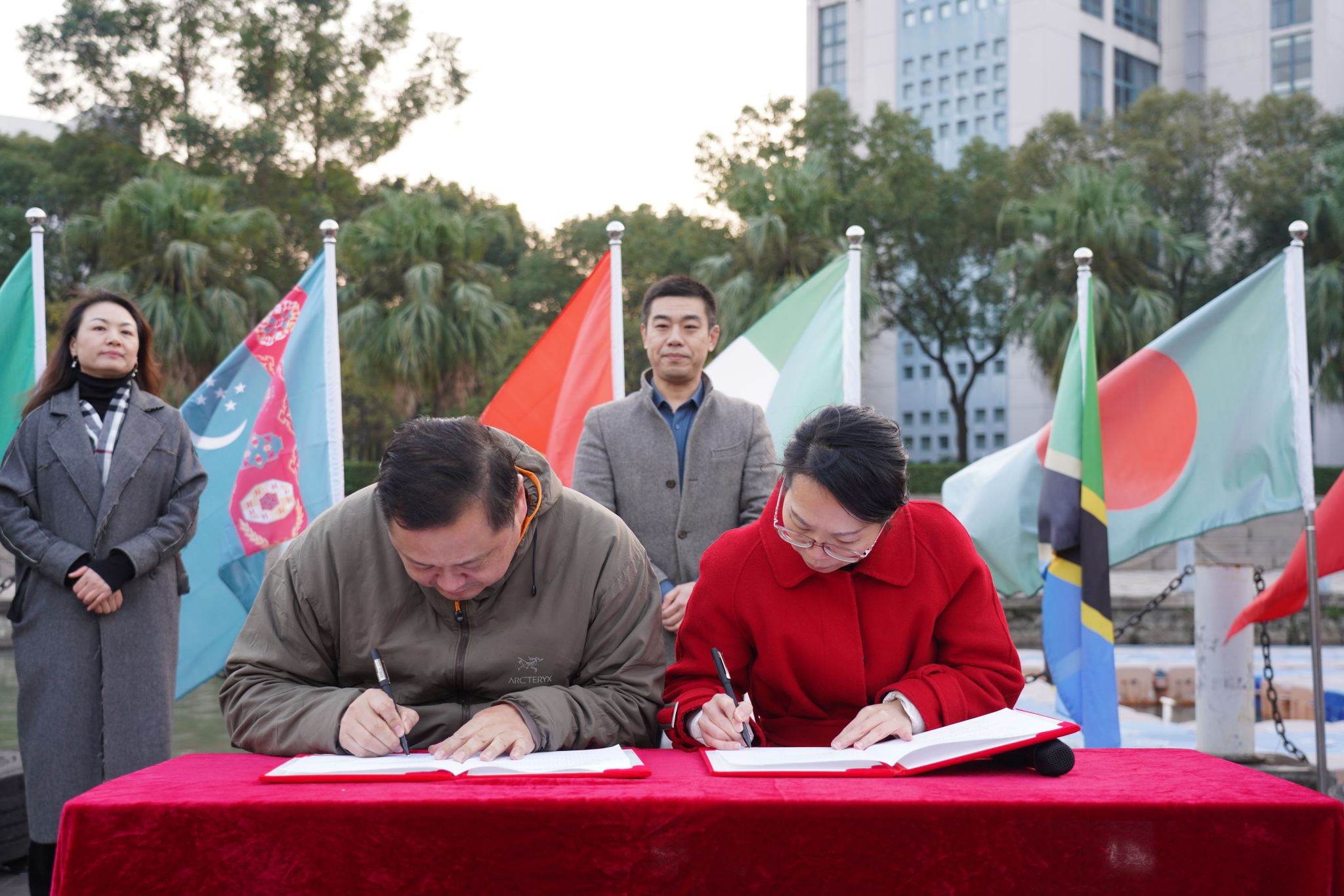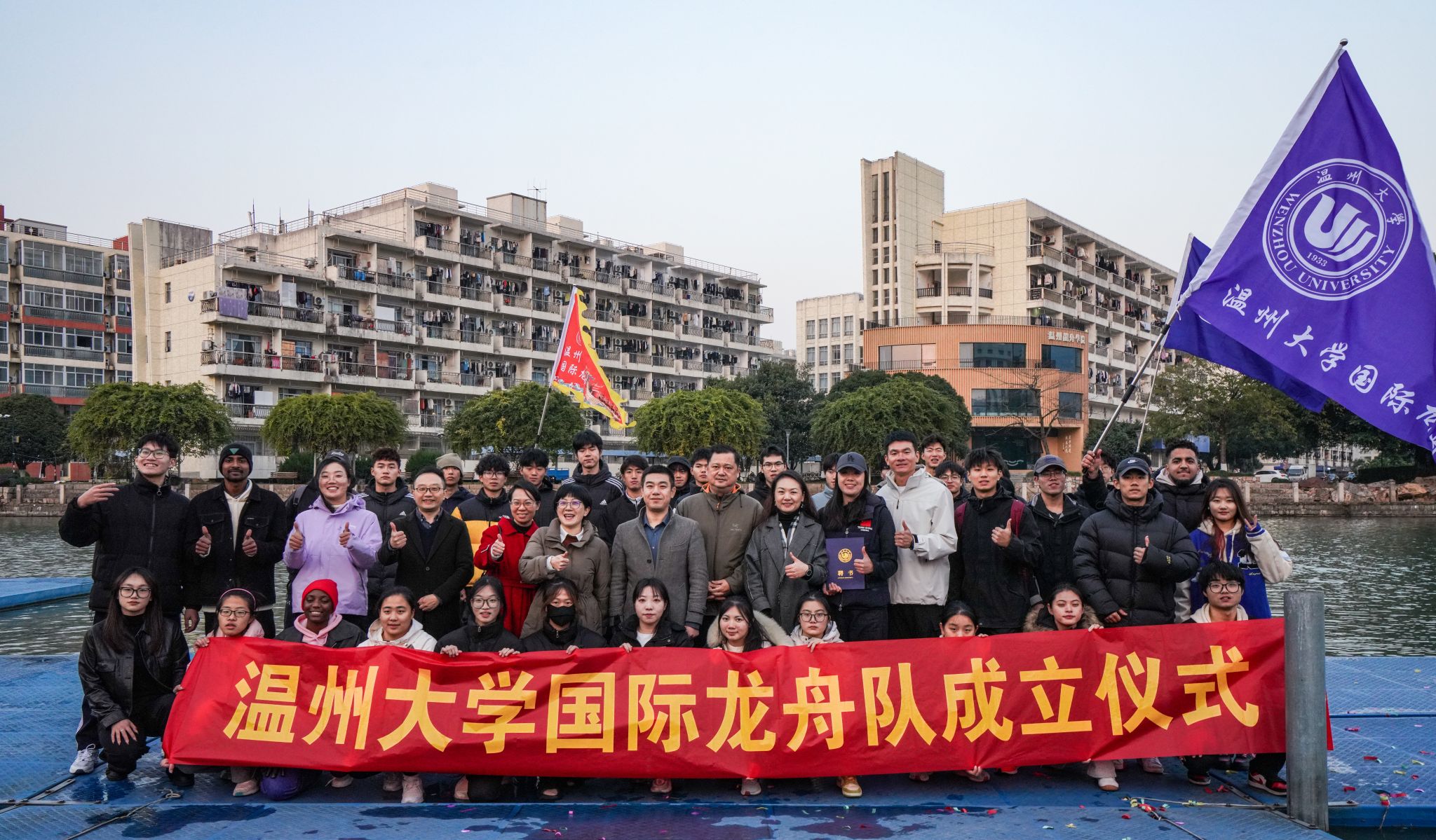 领导班子,国际龙舟队教练朱敏圆,龙舟队队员及师生代表们参加国际龙舟队成立仪式。仪式由区块链游戏