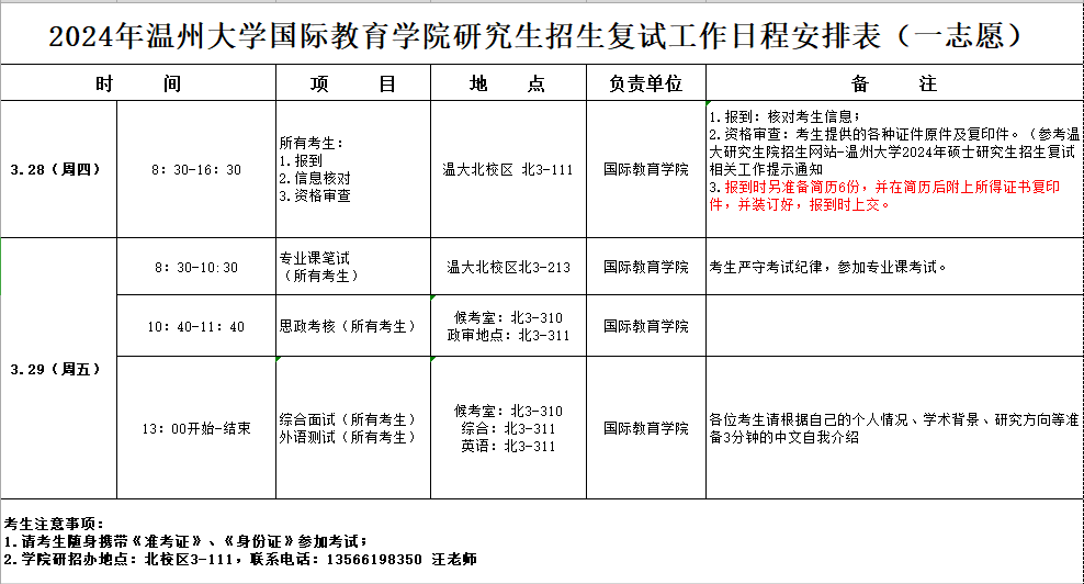 一志愿考试复试安排
